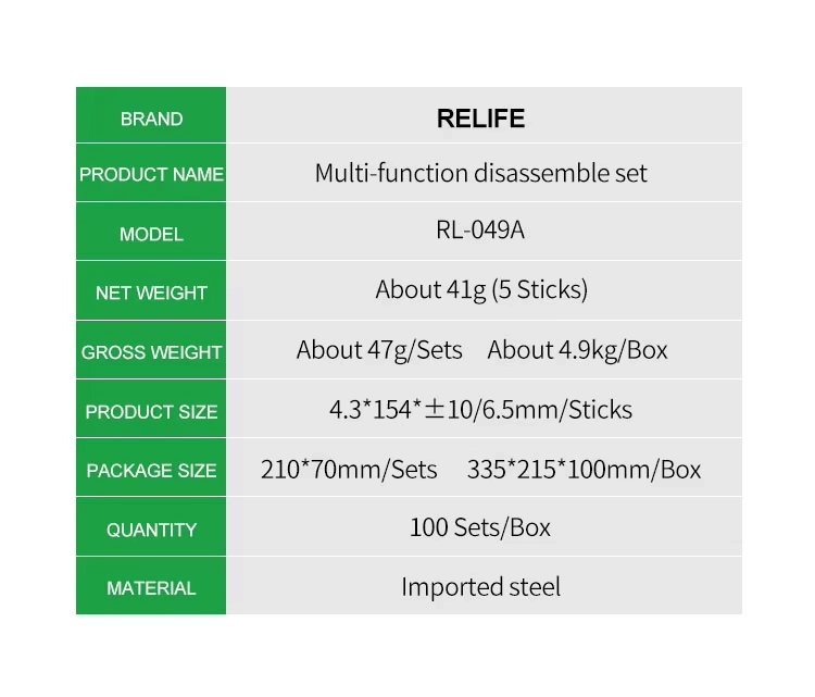 Relife RL-049A Kit Disassembler 5-in-1 (10 Tips)