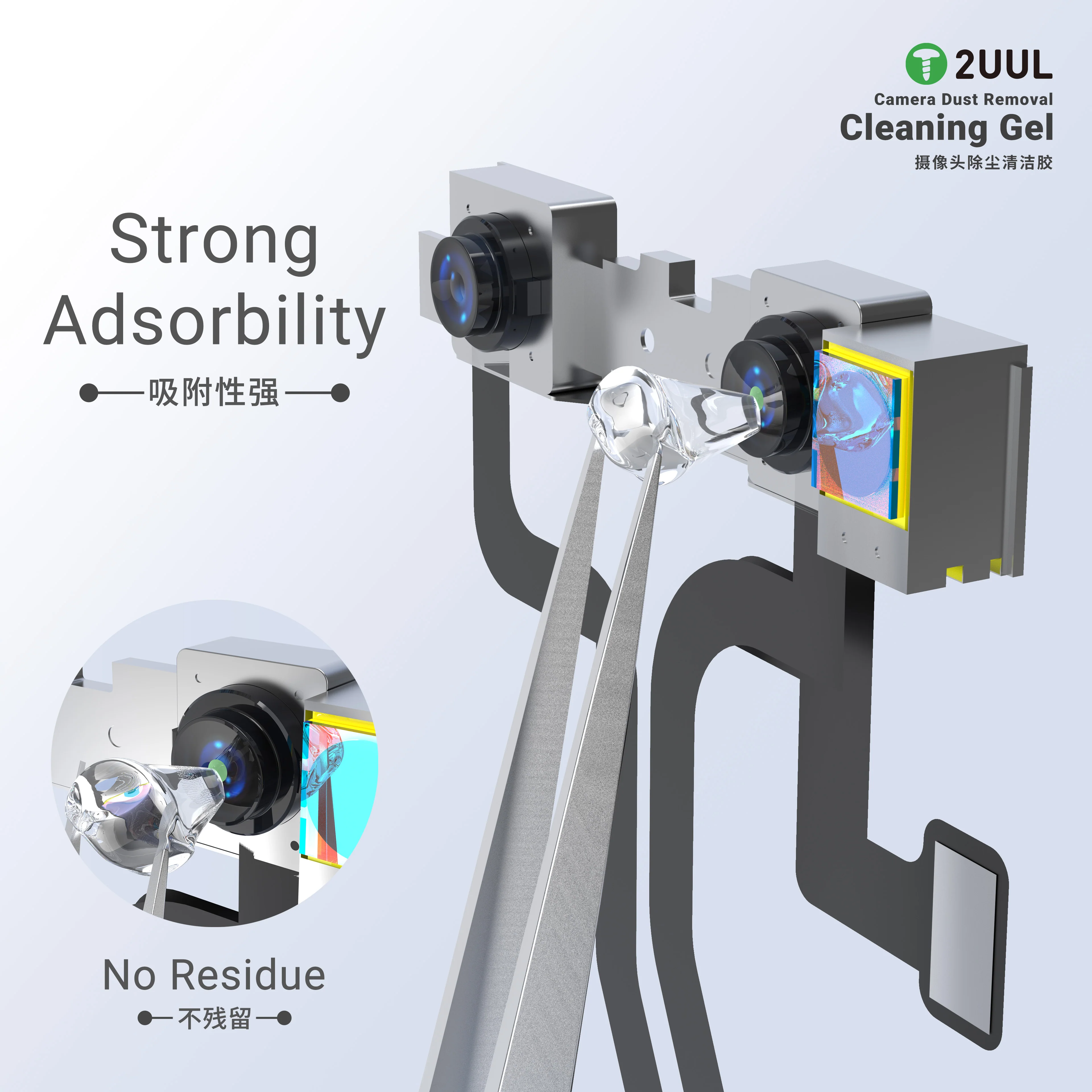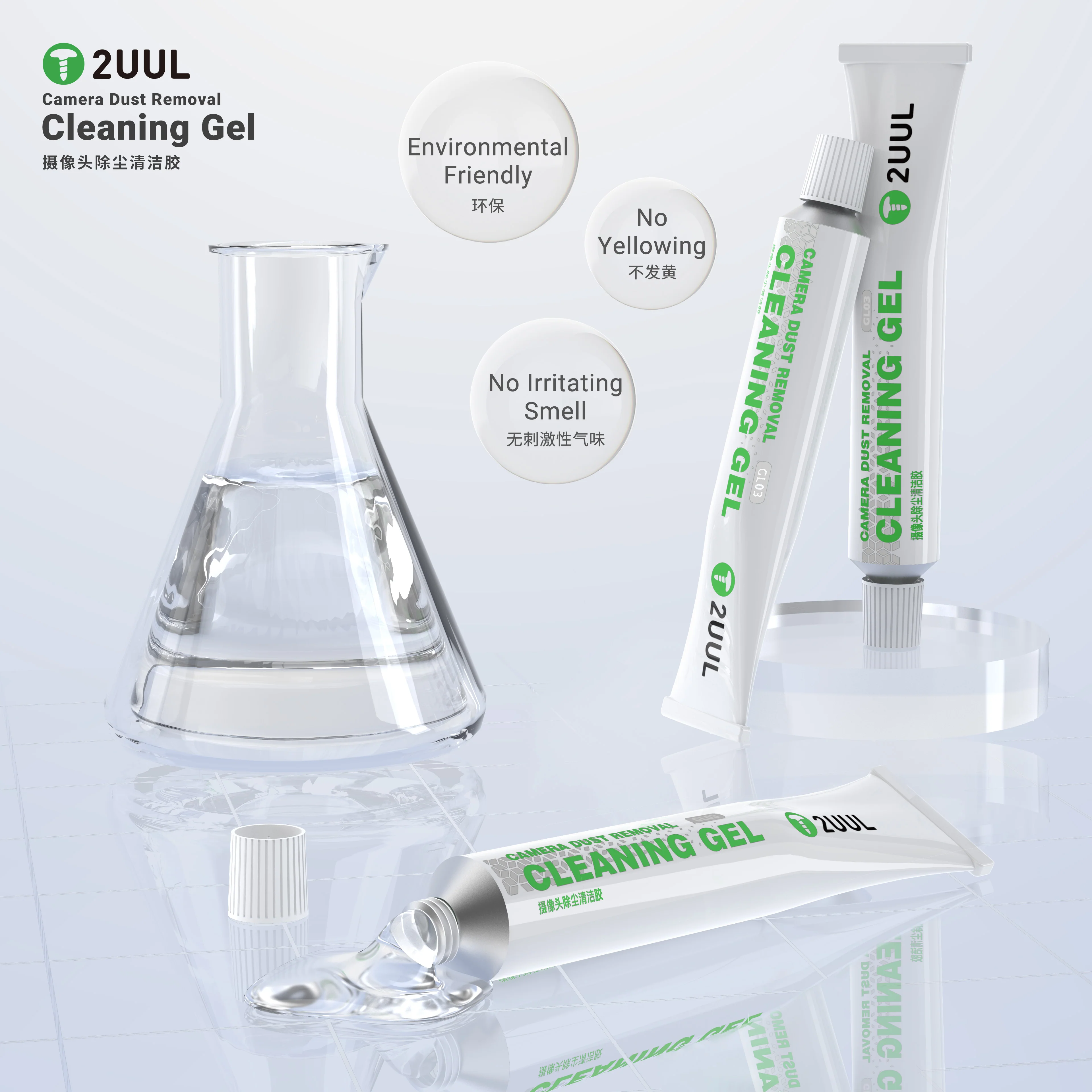 Il 2UUL GL03 è un gel sintetico di alta qualità progettato specificamente per la pulizia dei componenti ottici più delicati. È lo strumento indispensabile per i laboratori di riparazione smartphone che necessitano di rimuovere polvere, particelle e impronte dai moduli fotocamera e dalle lenti interne senza graffiare o lasciare residui chimici.