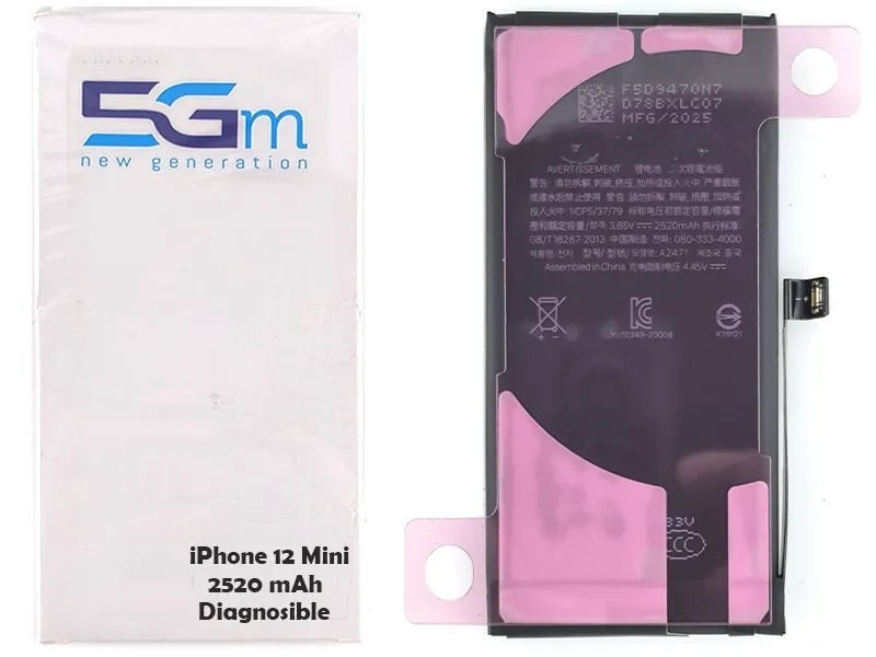 iPhone 12 Mini: Batteria 5G-M 2520mAh Diagnosable! 🛠️ Adesivo PREINSTALLATO, autonomia MAX ⚡, ZERO errori "non genuina" ✅. Garanzia 5G-M, qualità per il tuo lab. ⭐