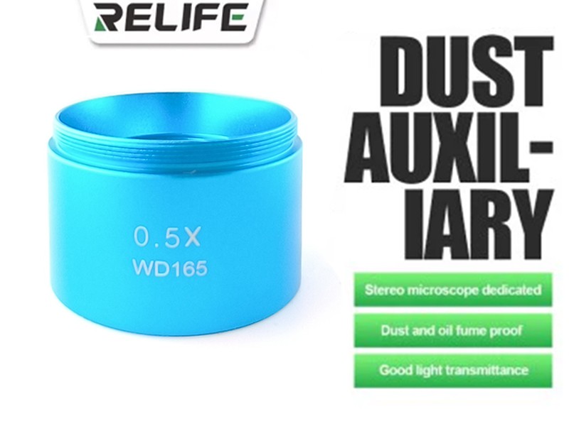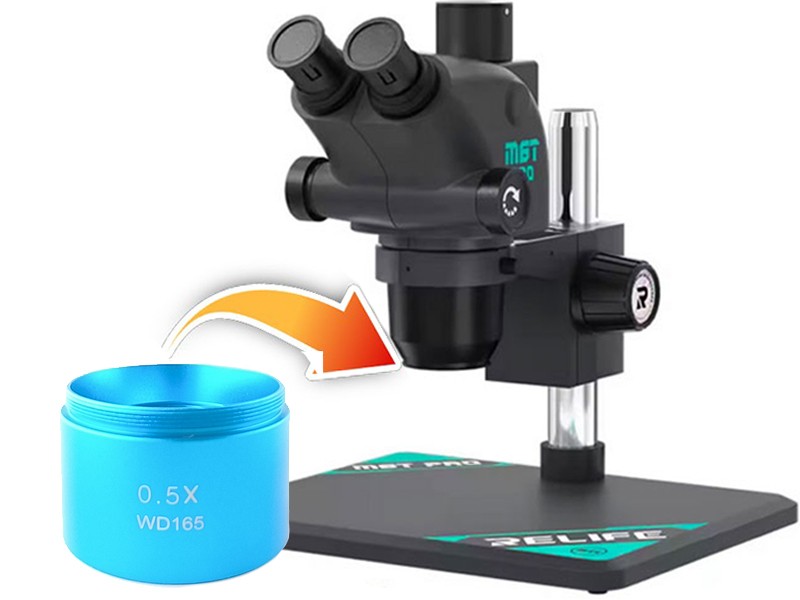 Lente ausiliaria 0.5X per microscopi elettronici, progettata per ampliare il campo visivo e aumentare la distanza di lavoro fino a 165mm – ideale per saldature di precisione e riparazioni chip.