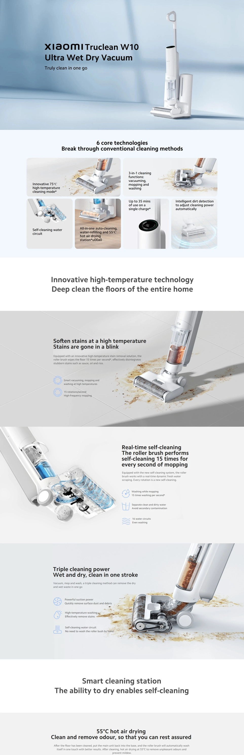 Xiaomi Truclean W10 Ultra non è una semplice lavapavimenti, ma una stazione di pulizia completa 3-in-1 progettata per rivoluzionare l'igiene domestica. Grazie alla sua tecnologia all'avanguardia, aspira, lava e scrosta lo sporco più ostinato in una sola passata, utilizzando acqua ad alta temperatura per sciogliere macchie e grasso che i sistemi tradizionali non riescono a rimuovere.