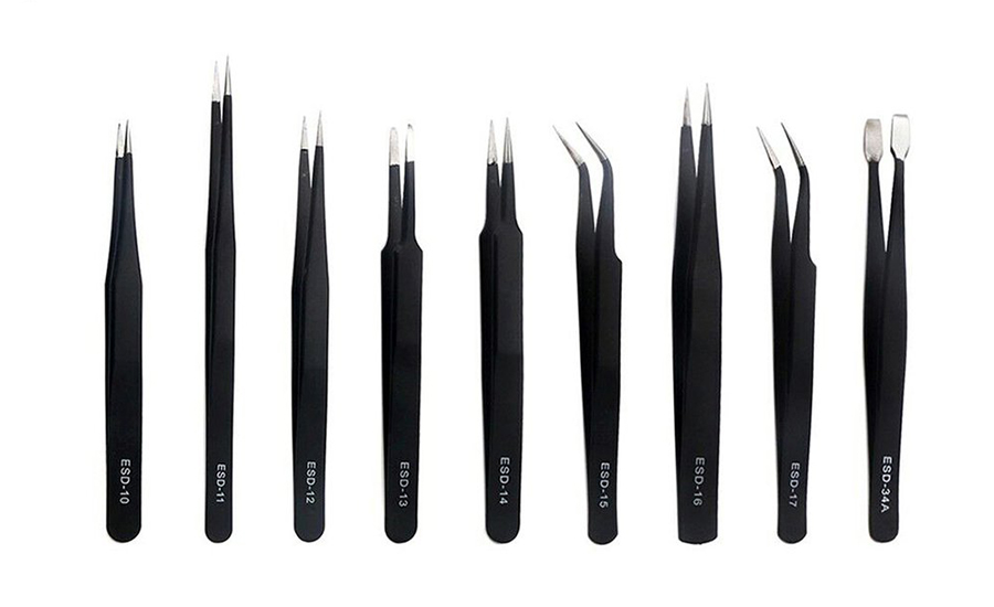 Complete set of 9 precision pins suitable for all types of processing, from the smallest SMD component to chips of any size, ESD for the safety of all electronic components